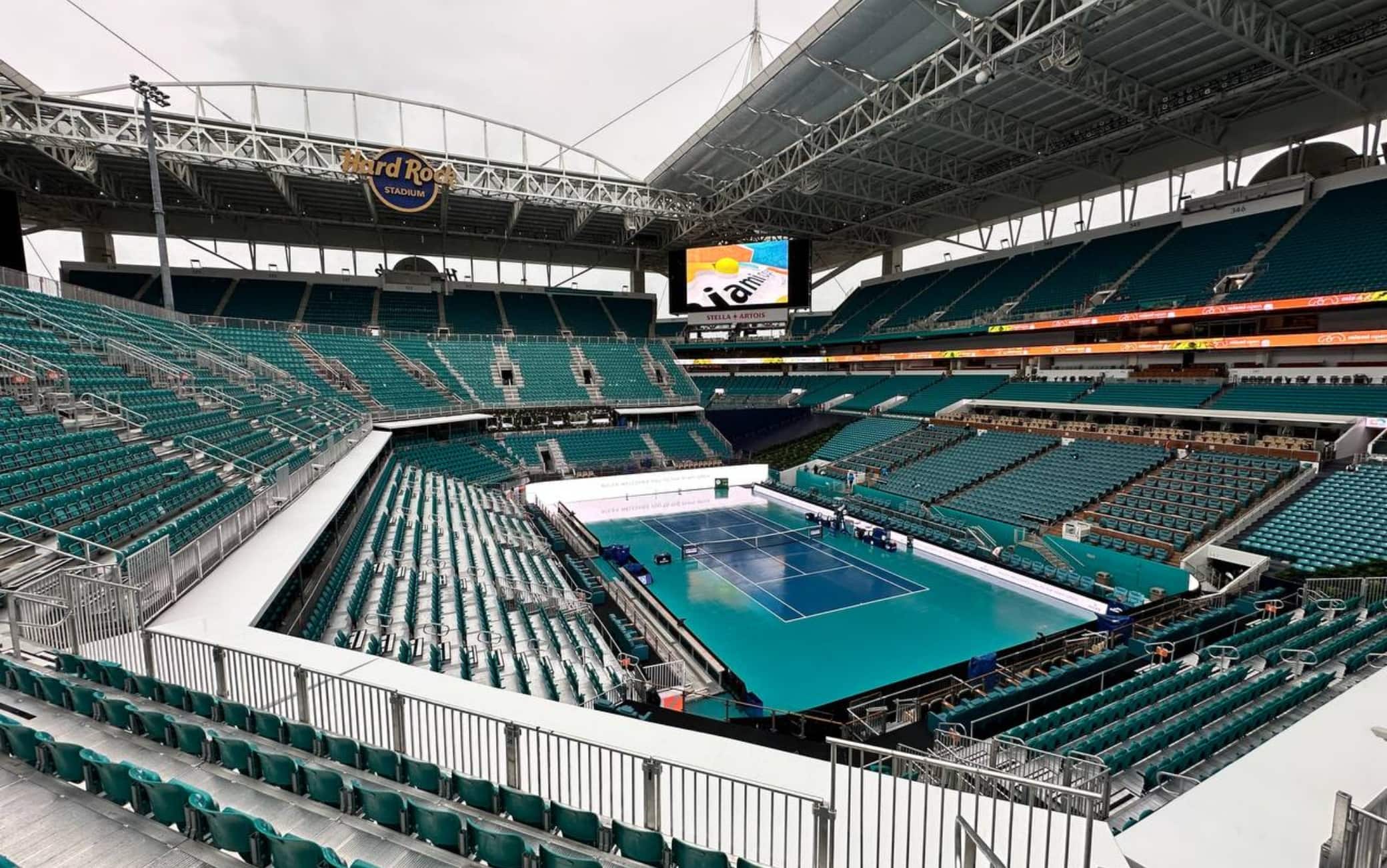 Come a Indian Wells - ma anche in altri Masters 1000 - il torneo di Miami è sprovvisto di un centrale con copertura. Il campo è costruito all'interno dell'Hard Rock Stadium, casa dei Miami Dolphins. Come ogni anno, al termine della manifestazione, il campo da tennis verrà smontato per consentire alla squadra di NFL di disputare le proprie partite interne. Essendo il campo una struttura temporanea, non è possibile costruire un tetto retraibile al di sopra.