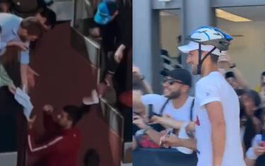 Djokovic colpito da borraccia scivolata a un fan