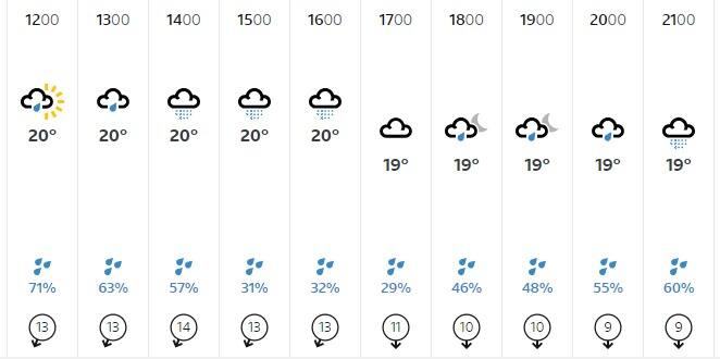 Le previsioni non sembrano incoraggianti anche per la giornata di lunedì. Rispetto agli ultimi due giorni, secondo BBC Weather, ci sarà un miglioramento, ma restano le possibilità di pioggia tra le 12 e le 21, fascia in cui si disputeranno le partite.