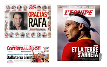 Dalla Spagna all'Italia, passando per la Francia e il Sudamerica: tutto il mondo celebra Rafael Nadal dopo l'annuncio del ritiro. "La terra si fermò" scrive L'Equipe che dedica l'intera prima pagina al Re del Roland Garros. "Adesso sì, è finita" aggiunge El Mundo con la foto della finale di Wimbledon 2008. Tutte le prime pagine che omaggiano il tennista iberico