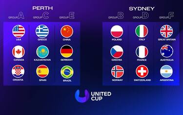 - La United Cup ha una formula "mista" con un round robin e un successivo tabellone a otto squadre a eliminazione diretta. Sono 18 le nazioni al via, divise in sei gironi: tre si giocano alla Ken Rosewall Arena di Sydney, altri tre alla RAC Arena di Perth.