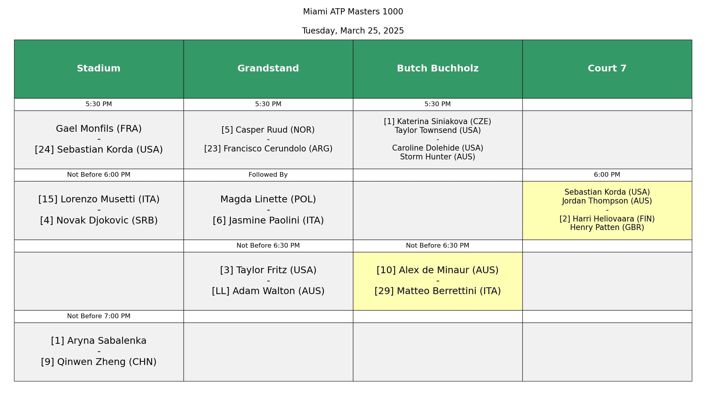 - Fritz (USA) vs [LL] Walton (AUS)