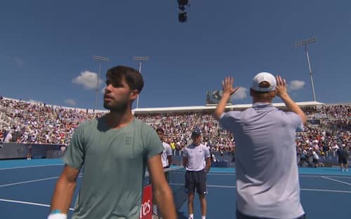 - Sinner comunica il ritiro ad Alcaraz: lo spagnolo si mostra subito preoccupato per le condizioni del suo avversario. Nel frattempo la fine del match viene annunciata anche dallo speaker al pubblico: inizialmente si sente qualche fischio, ma Sinner alza le mani per scusarsi e i tifosi applaudono immediatamente