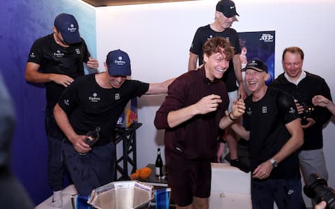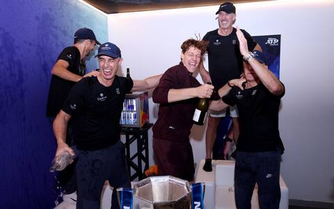 Jannik Sinner, la festa con il team dopo la vittoria delle ATP Finals. Foto