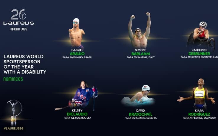 A tenere alto l’orgoglio italiano c’è anche la nomination di Simone Barlaam nella categoria Laureus World Sportsperson of the Year with a Disability ("Sportivo con disabilità"). Nel 2025, ai Mondiali di Singapore, Simone Barlaam ha vinto l’oro nei 100 metri farfalla e nei 50, 100 e 400 metri stile libero. Simone Barlaam ha dichiarato: "Dopo un evento di così forte impatto come i Giochi Paralimpici di Parigi 2024, non è mai facile tornare in piscina e riaccendere quella fiamma dentro di sé. Fortunatamente non è stato il mio caso. Sento ancora di avere molto da dare al mio sport. I Campionati Mondiali di Nuoto Paralimpico di Singapore 2025 ne sono stati un esempio. Ero molto motivato e felice di gareggiare lì. I risultati sono andati al di là di ogni mia aspettativa. Tornare a casa con quattro medaglie d'oro è stato davvero speciale. Molte gare si sono decise sul filo dei millesimi di secondo e questo ha denotato l’alta competitività delle gare nel nuoto Paralimpico. Ad esempio, la finale dei 400 metri stile libero è stata particolarmente serrata, con il mio caro amico Jacobo Garrido Braun che si è giocato il primo posto all’ultima bracciata. La sua gara si è decisa davvero per poco”. Oltre a Jannik Sinner e a Simone Barlaam, in nomination c’è anche il progetto A.S.D Gruppo Sportivo Valanga nella categoria "Laureus Sport for Good Award" (Lo sport per il bene comune). In questa speciale categoria si premiano individui o organizzazioni che, secondo una giuria di esperti, hanno dato un contributo significativo in ambito sociale, utilizzando lo sport come strumento terapeutico per migliorare le vite di bambini e bambine. A.S.D Gruppo Sportivo Valanga, in particolare, è un progetto multi-sport finalizzato all’inclusione che offre opportunità di istruzione conciliando workshop sportivi e psicologia dello sport.
