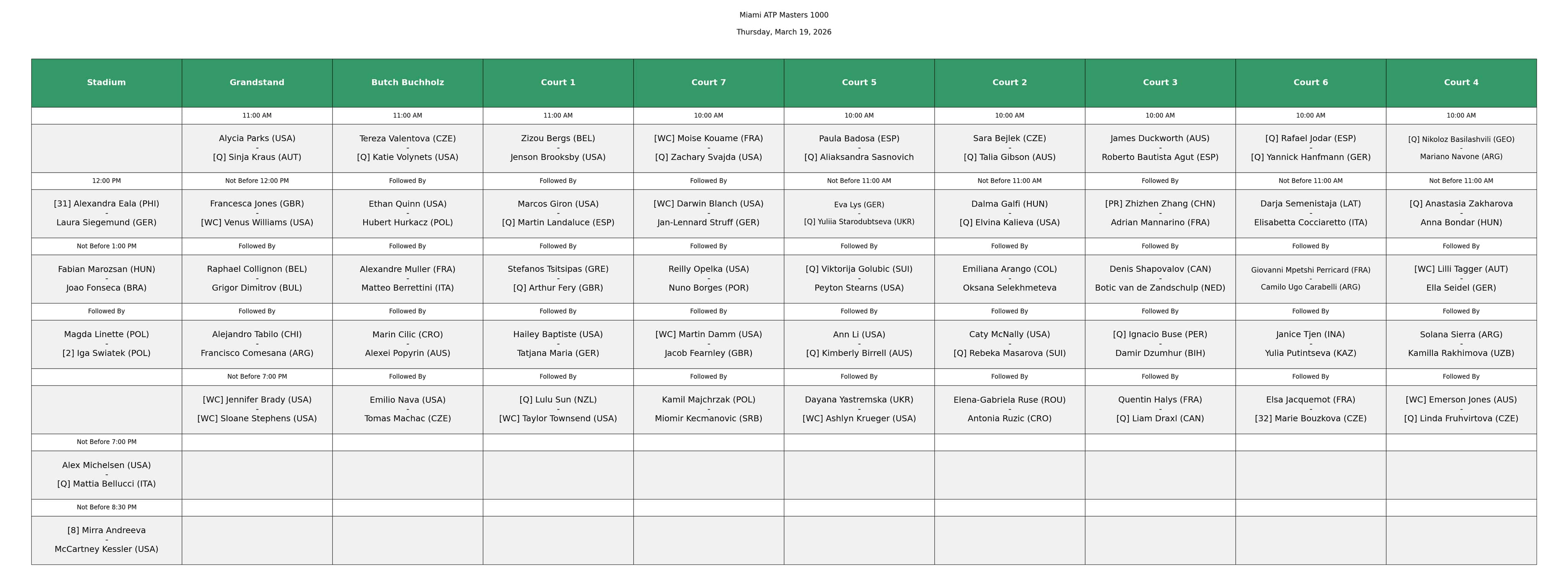 Dopo il mercoledì condizionato dal forte maltempo, che ha costretto gli organizzatori a cancellare tutte le partite in programma, l'Open di Miami si prepara a una giornata storica. 50 partite divise in 10 campi, con tanti Court periferici che vedranno l'inizio dei match addirittura alle 10 locali, le 15 in Italia. Occhi puntati su tre italiani e su Fonseca-Marozsan, da cui uscirà il rivale di Alcaraz. Tra gli uomini esordio per Matteo Berrettini, che dopo l'uscita al 2° turno a Indian Wells vuole il riscatto in Florida. Il romano affronta nella serata italiana (3° match dalle 16 sul Grandstand) il francese Alexandre Muller, n°90 del ranking. In campo nella notte anche Mattia Bellucci, proveniente dalle qualificazioni, che sfida lo statunitense Alex Michelsen sul Centrale. In campo femminile, dove Elisabetta Cocciaretto sfida (2° incontro dalle 15 sul Court 6) la lettone Darja Semenistaja, giocatrice proveniente dalle qualificazioni. Tutto da vivere in diretta su Sky Sport e in streaming su NOW fino al 29 marzo.