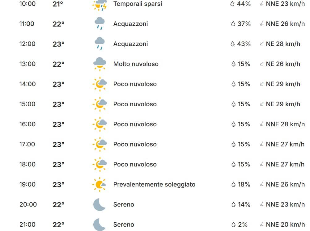 Bene ma non benissimo, direbbe qualcuno. Le previsioni di The Weather Channel infatti tornano a parlare di temporali, pioggia e acquazzoni nella prima parte di giornata, con precipitazioni concentrate in mattinata e fino a mezzogiorno. Dal primo pomeriggio, grazie anche a un vento moderato da Nord-Est (20-30 km/h) la perturbazione dovrebbe allontanarsi e lasciare spazio al sole, con cielo sereno in serata.