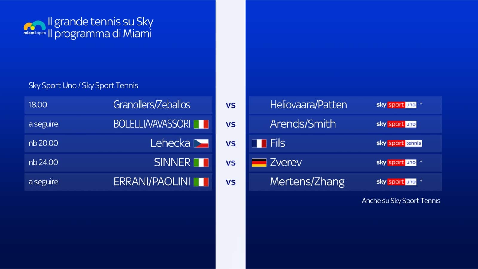 - A seguire, non prima di mezzanotte: Sinner vs Zverev