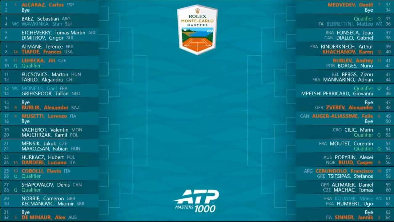 A Monte-Carlo sarà un debutto francese per Jannik Sinner che attende il vincente del derby transalpino tra Kouamé e Humbert. L'azzurro potrebbe incrociare Auger-Aliassime ai quarti e Zverev in semifinale. Parte alta del tabellone per Alcaraz e Musetti: il remake della finale dello scorso anno è possibile in semifinale. Al via anche Darderi, Cobolli e Berrettini che entreranno in gioco al primo turno. Il torneo sarà in diretta su Sky Sport e in streaming su NOW dal 5 al 12 aprile