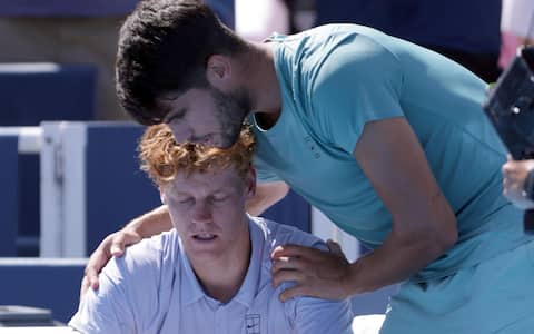 - In Ohio, l'epilogo che non ti aspetti. Il 18 agosto - un paio di giorni dopo il suo 24° compleanno - Sinner si presenta in finale con Alcaraz senza perdere un set, ma il match dura appena 23 minuti per il ritiro dell'italiano a causa di un virus che lo aveva già debilitato il giorno precedente. "Sono sceso in campo per il pubblico ma non ce la faccio. Mi sento troppo male, non posso muovermi", confessa. Subito consolato dal rivale, che sulla telecamera scrive: 'Sorry Jannik'.