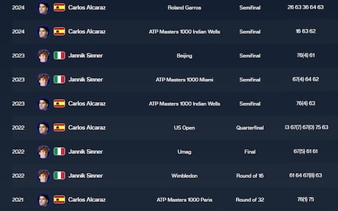- Così, l'azzurro sigilla il suo 2025 con 6 titoli, diventando il giocatore più giovane, nonché terzo in assoluto (dopo Roger Federer e Novak Djokovic) ad aver raggiunto nello stesso anno la finale in tutti e quattro gli Slam e nelle Finals.