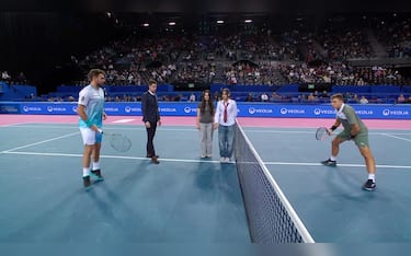 Jimmy Butler non ha mai nascosto la sua ammirazione per Carlos Alcaraz: la star NBA, da poco trasferitasi dai Miami Heat ai Golden State Warriors, è volata addirittura a Doha per assistere al match del primo turno vinto dallo spagnolo contro Cilic. Butler però non si è limitato a guardare: dopo la partita è entrato in campo e ha scambiato qualche colpo con il suo tennista preferito. Tra tentativi di tweener, palle corte e smash vincenti, i due hanno palleggiato e scherzato tra gli applausi del pubblico
