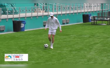 Pioggia a Miami, Sinner si riscalda con il pallone da calcio