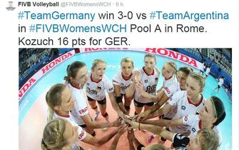 L'Italvolley troverà le tedesche, che hanno battuto la Tunisia, il 27 settembre (foto da Twitter) -