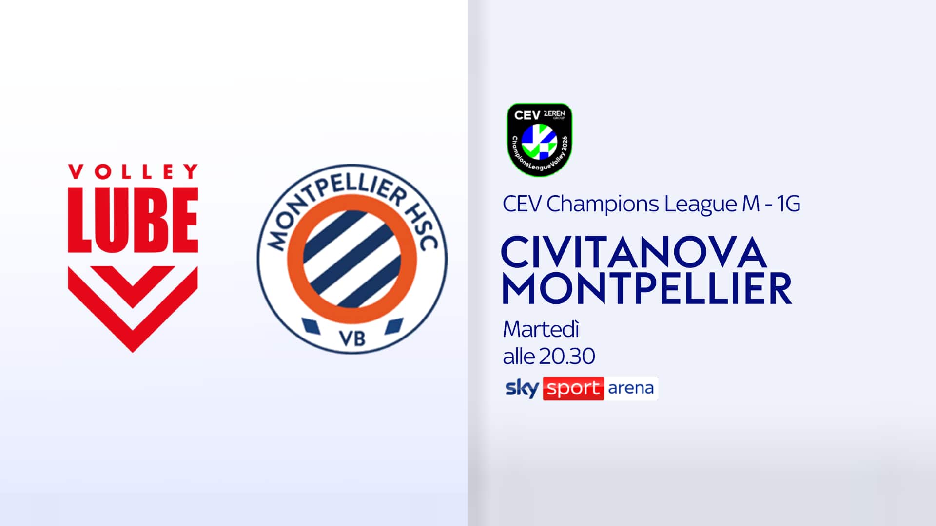 - Alle 20.30 in diretta su Sky Sport Arena e NOW: Cucine Lube Civitanova-Montpellier Hsc Vb (telecronaca di Giovanni Cristiano)